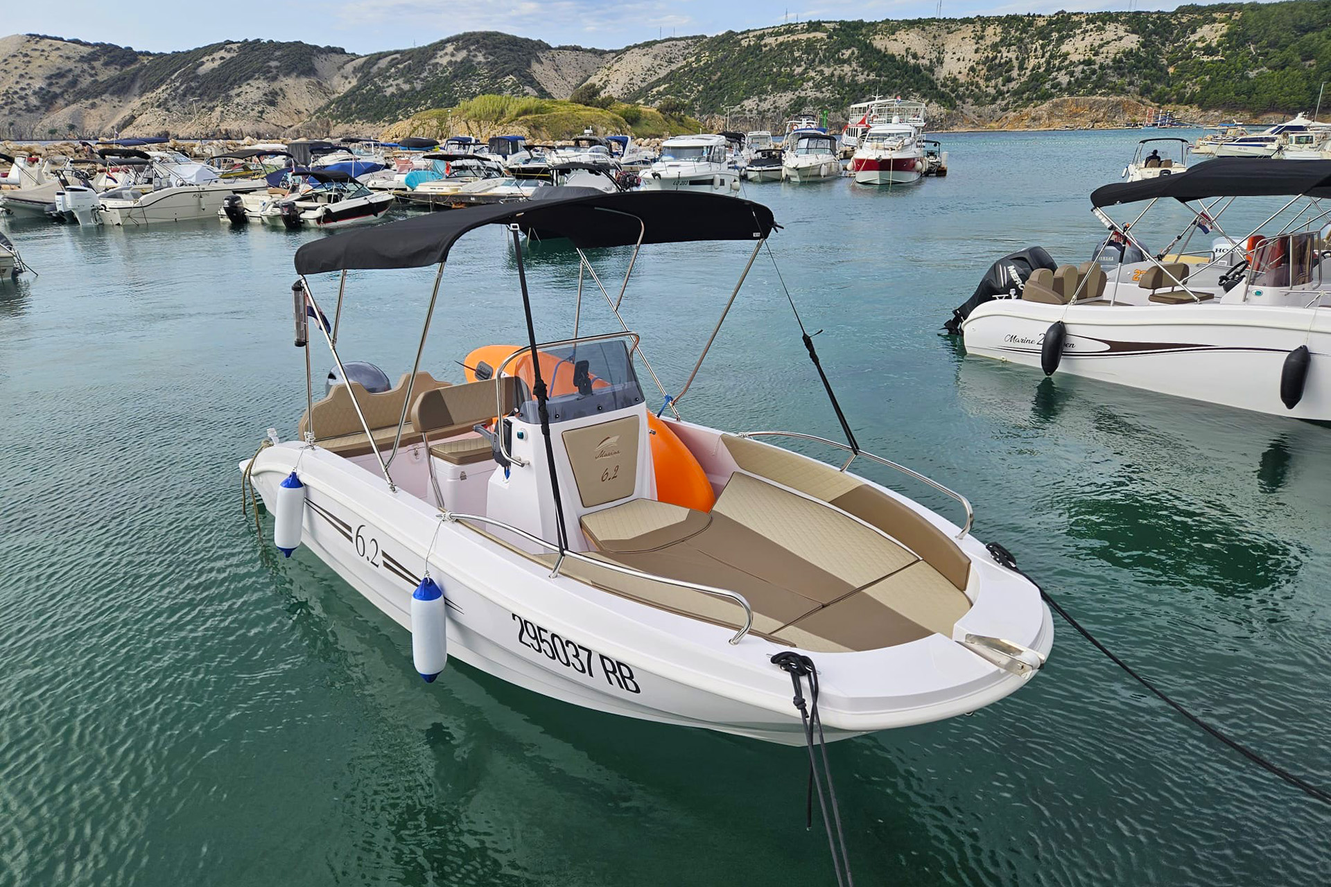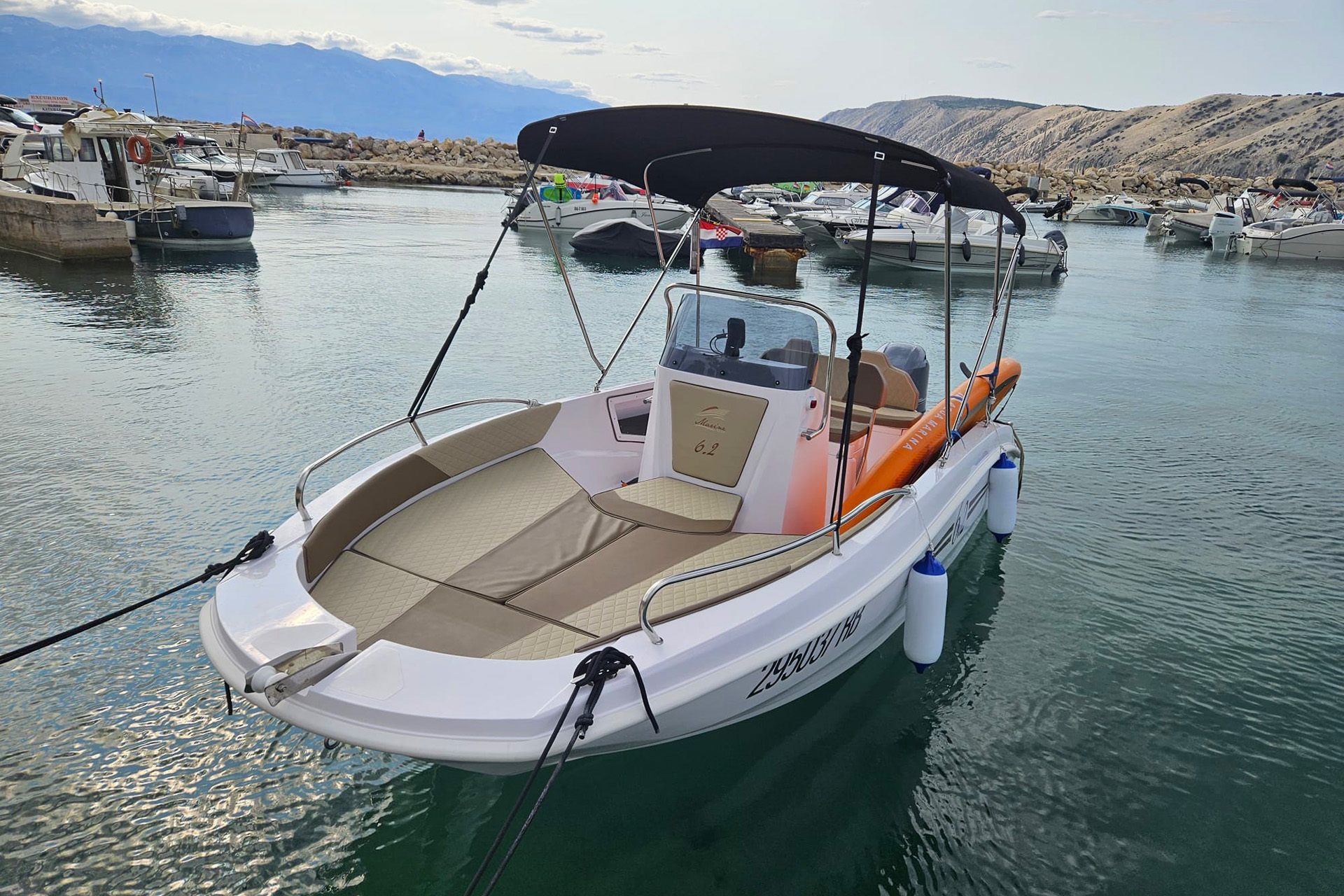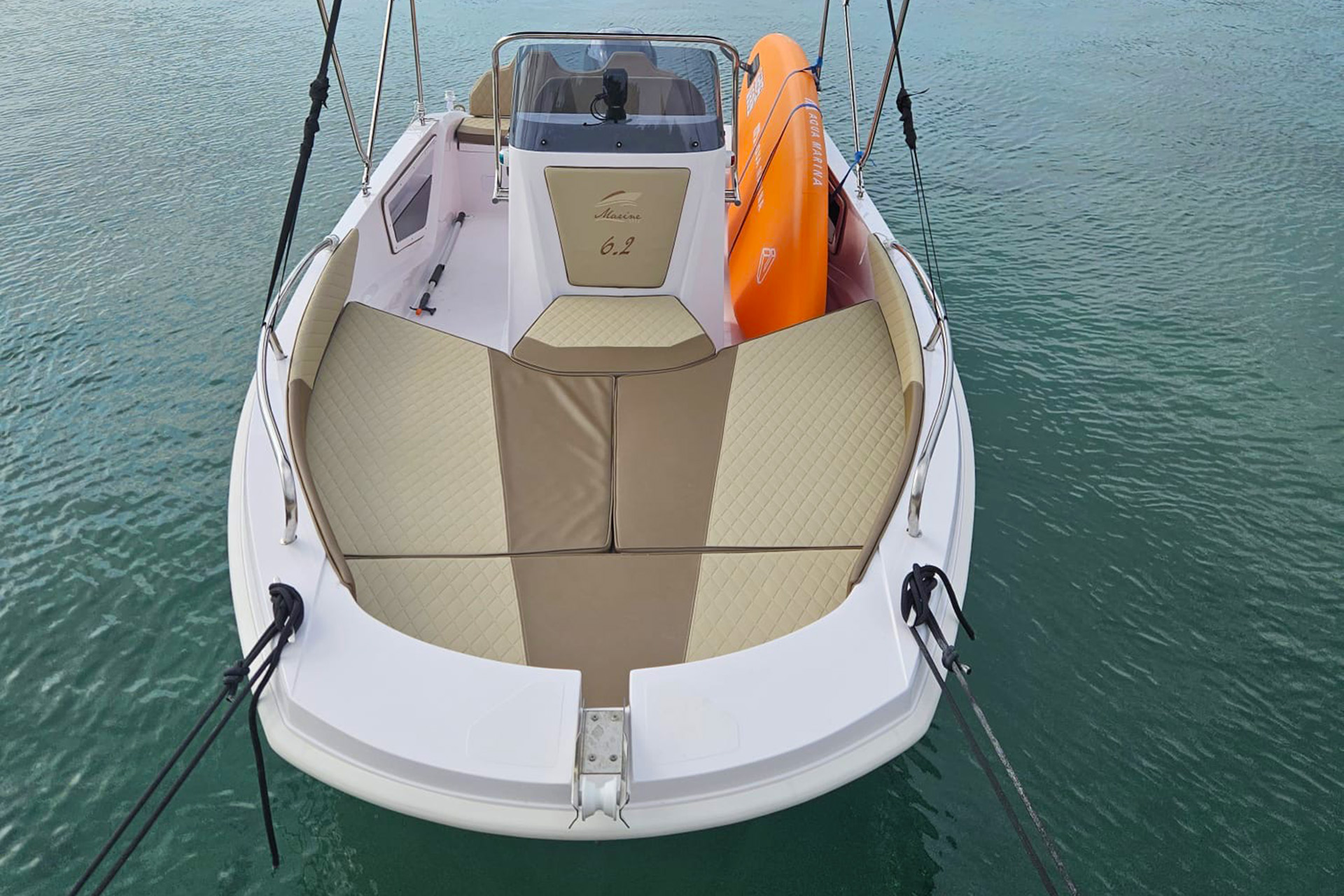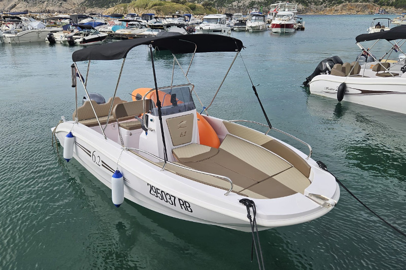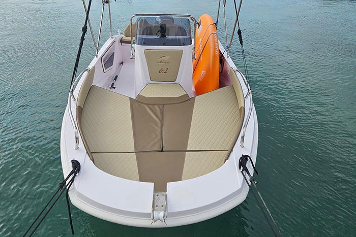 Die Marine 6.2 ist für alle gedacht, die Spaß und Freiheit auf dem Meer suchen. Ein Boot für viele Einsatzbereiche: Tagesausflüge, Entspannen in der Sonne, Tauchen im Meer, Angeln und Wassersport. Es besticht durch seinen sportlichen, jugendlichen Stil, der sich an Ihre Wünsche anpassen lässt. Die Räume wurden sorgfältig gestaltet und vermitteln das Gefühl eines deutlich größeren Bootes.